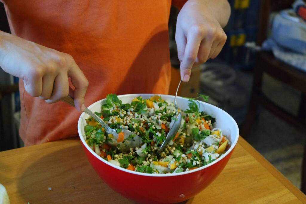4. נוסיף את הכוסמת המושרת ונערבב היטב.