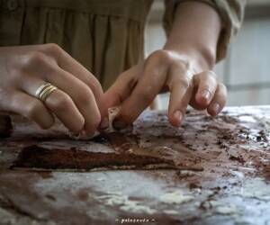 - על כל עיגול נמרח שכבה דקה של שמן זית/ קוקוס (מלבד במרכז העיגול) ונוסיף את הסילאן והקקאו מעל.